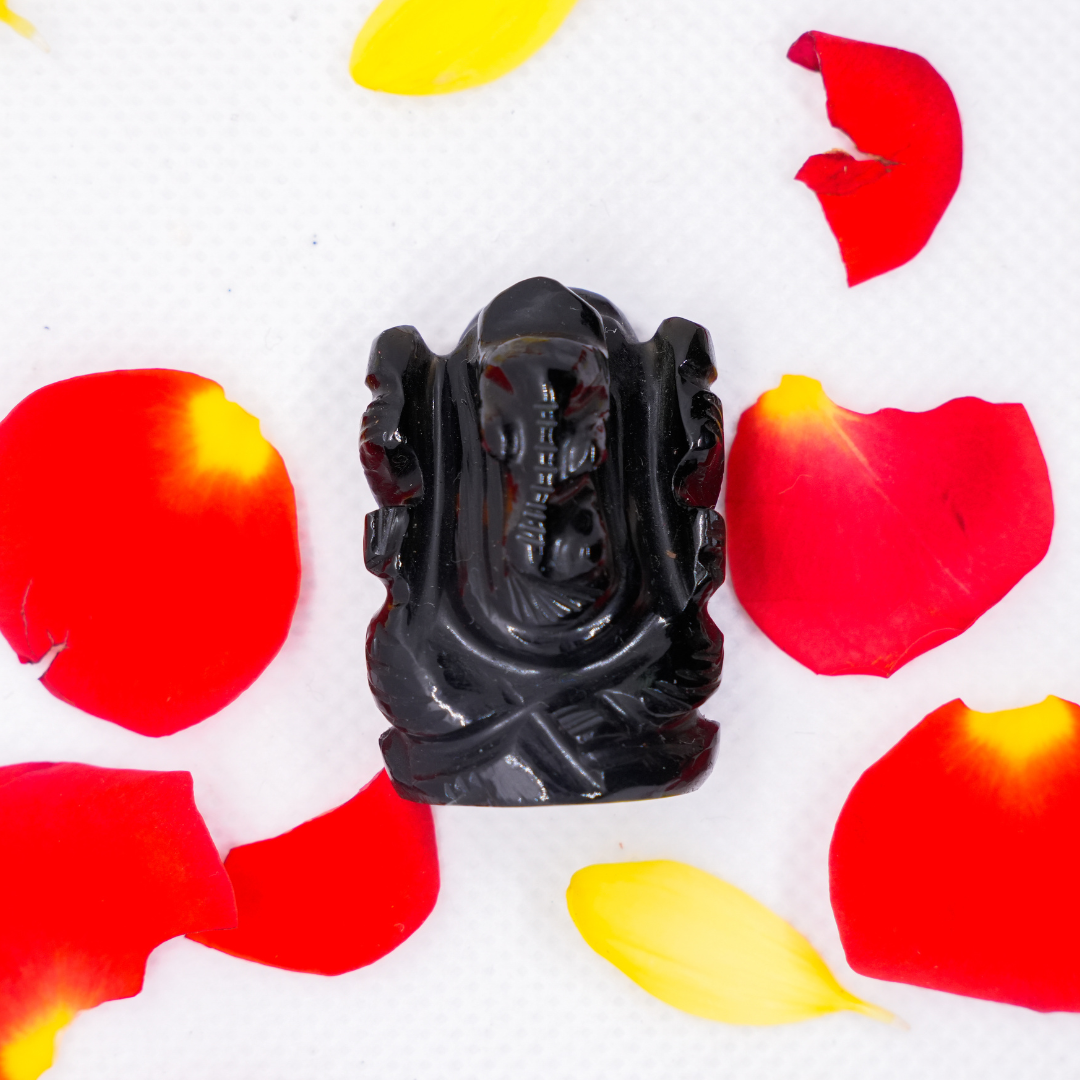 Black Tourmaline Ganesha Idol 1 Inch – Natural Stone Ganpati for Protection & Success